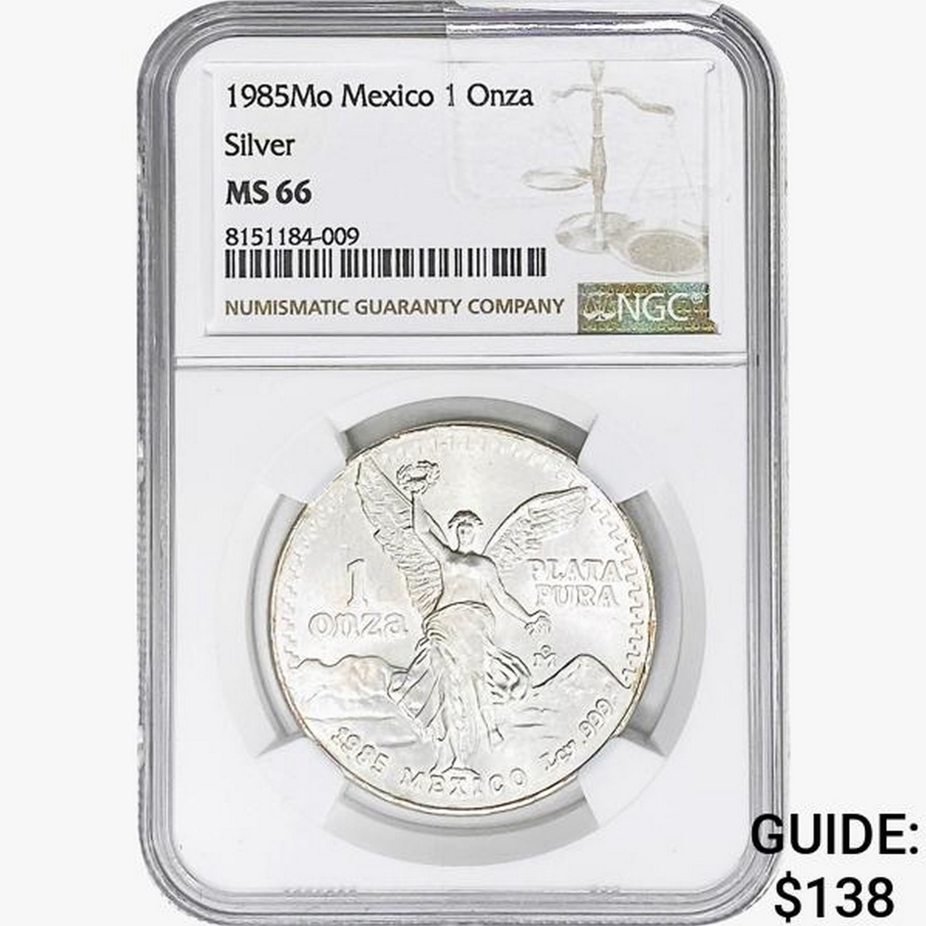 1985Mo 1oz. Silver Mexicanos Onza NGC MS66
