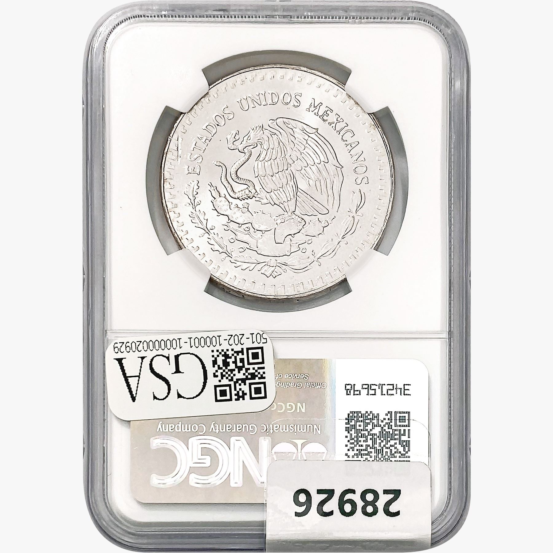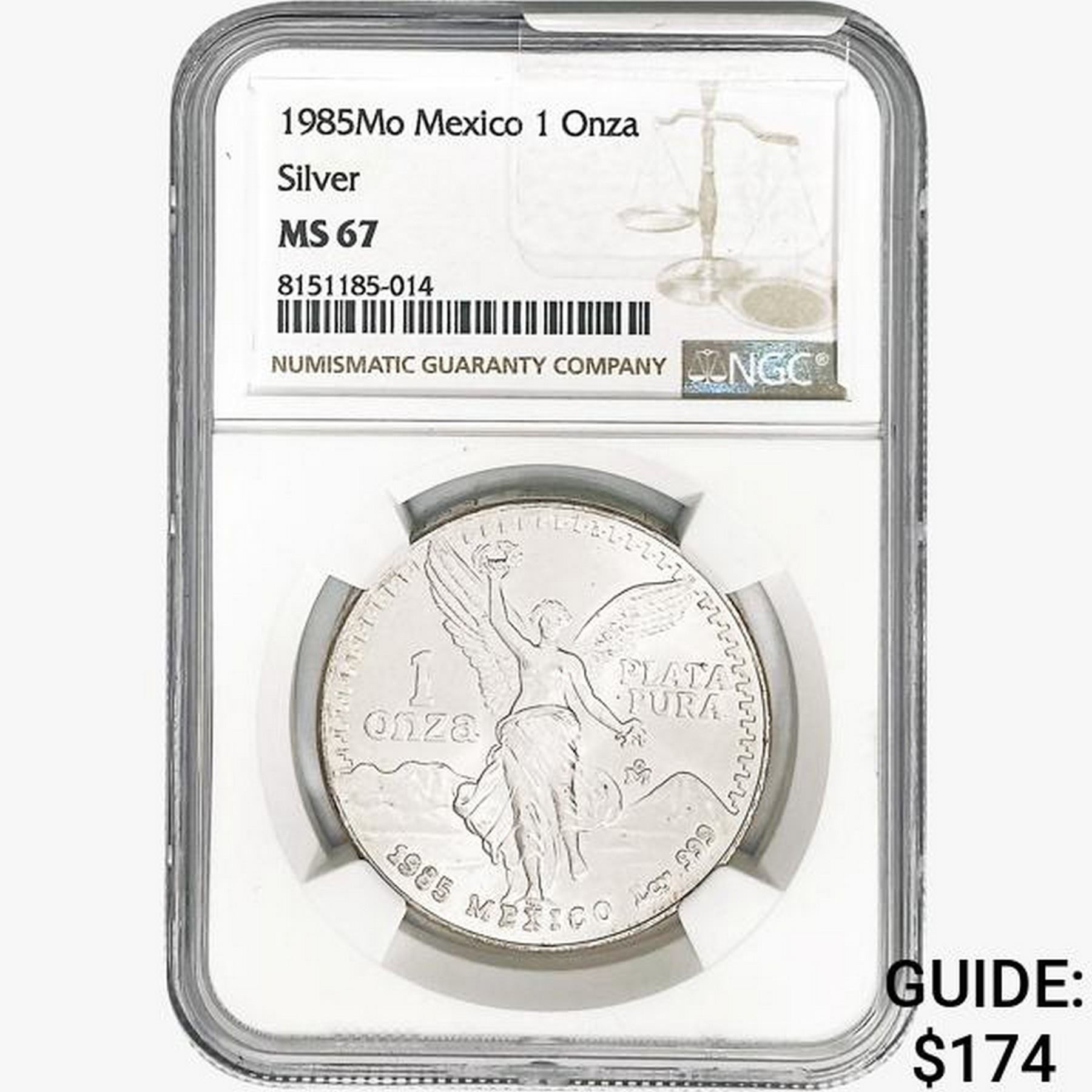 1985Mo 1oz. Silver Mexicanos Onza NGC MS67