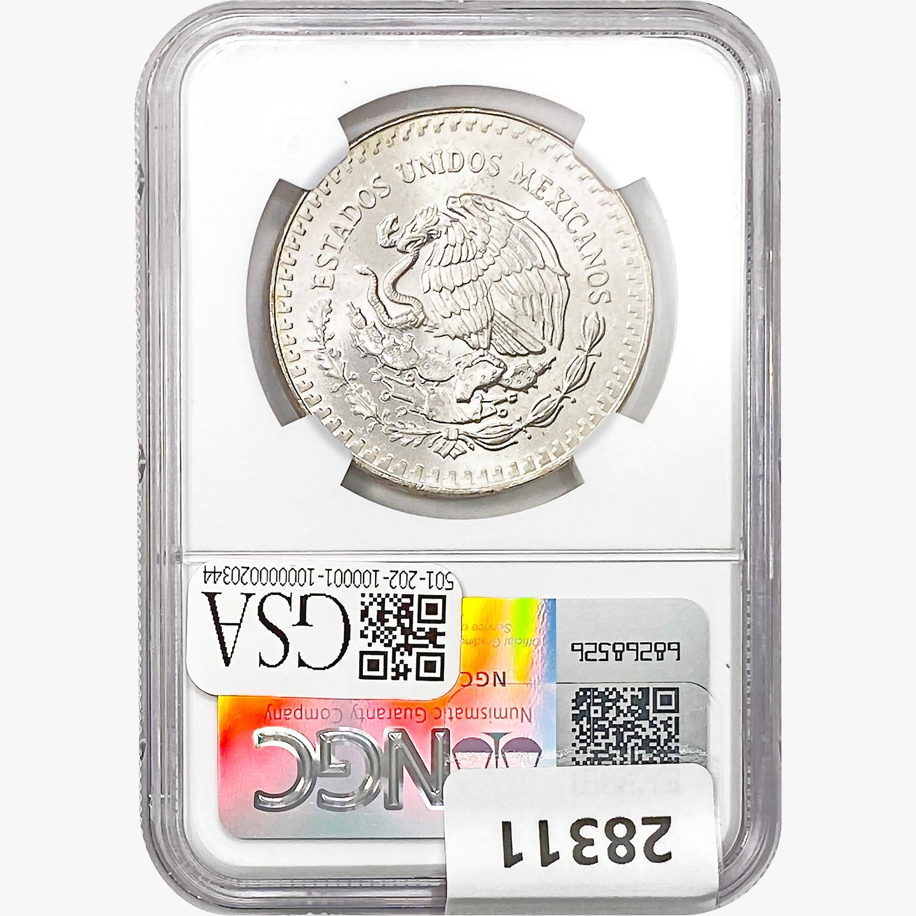 1985Mo 1oz. Silver Mexicanos Onza NGC MS67