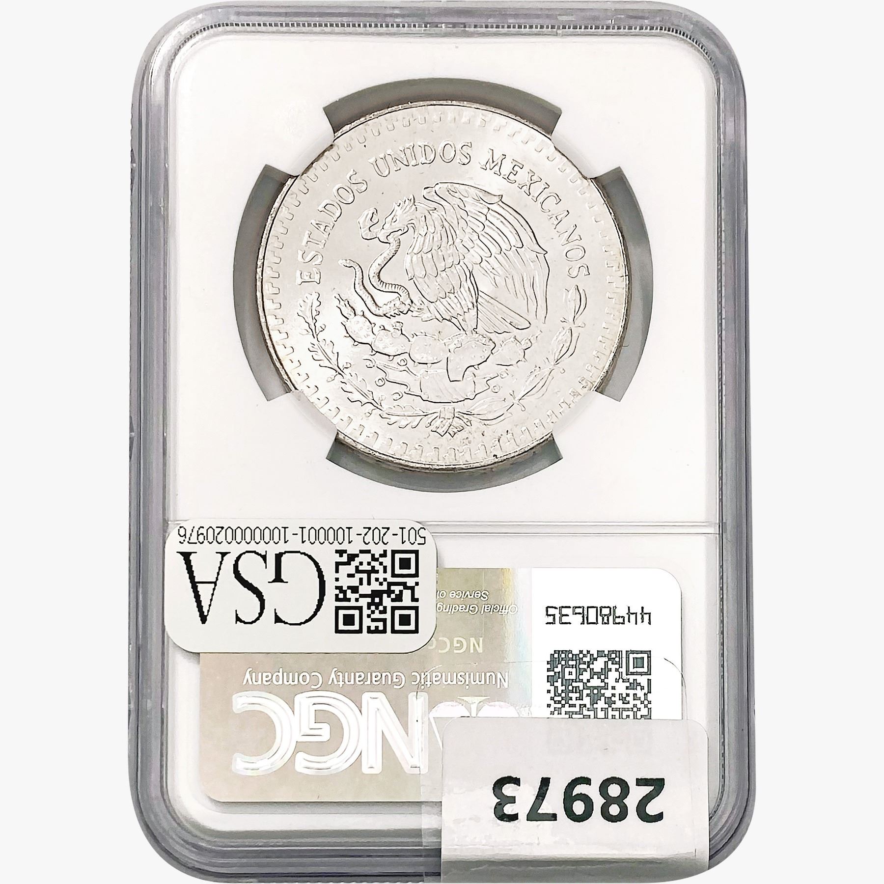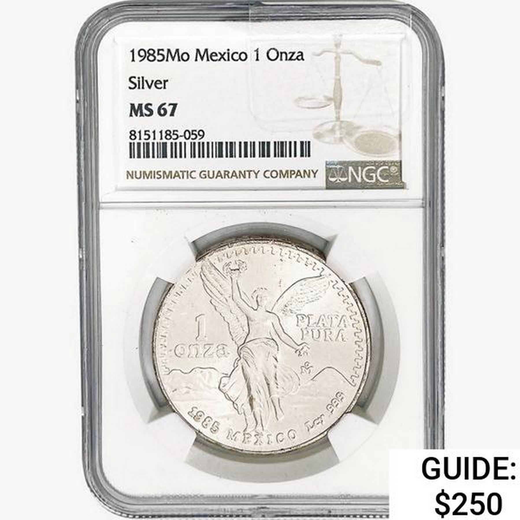 1985Mo 1oz. Silver Mexicanos Onza NGC MS67