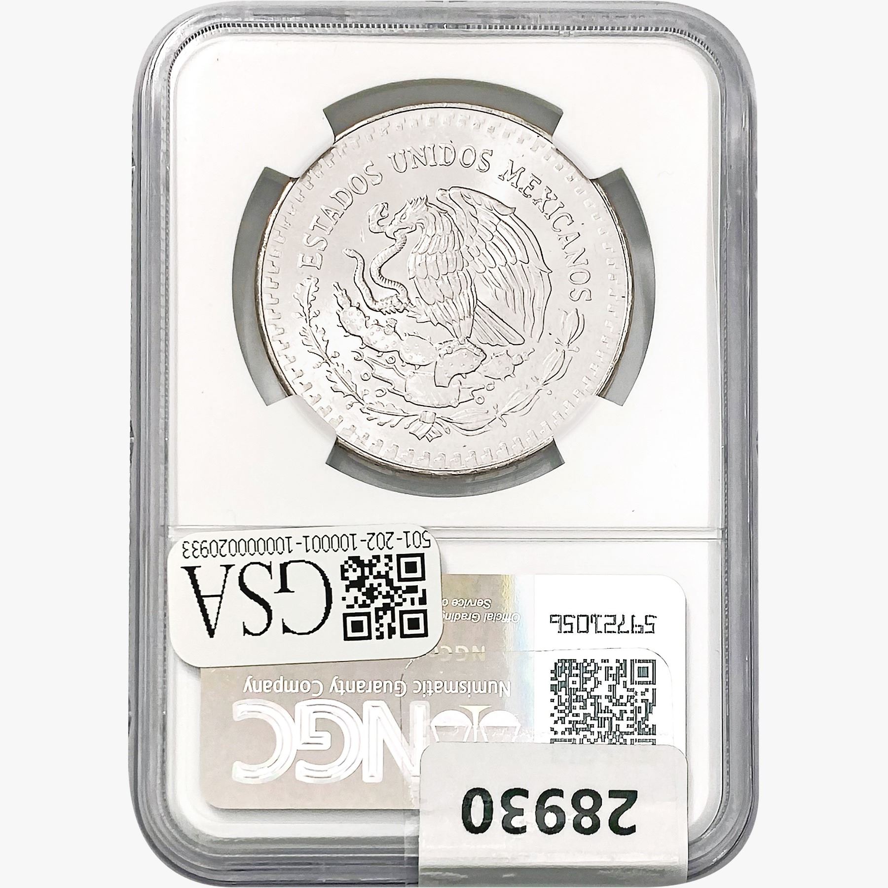 1985Mo 1oz. Silver Mexicanos Onza NGC MS67