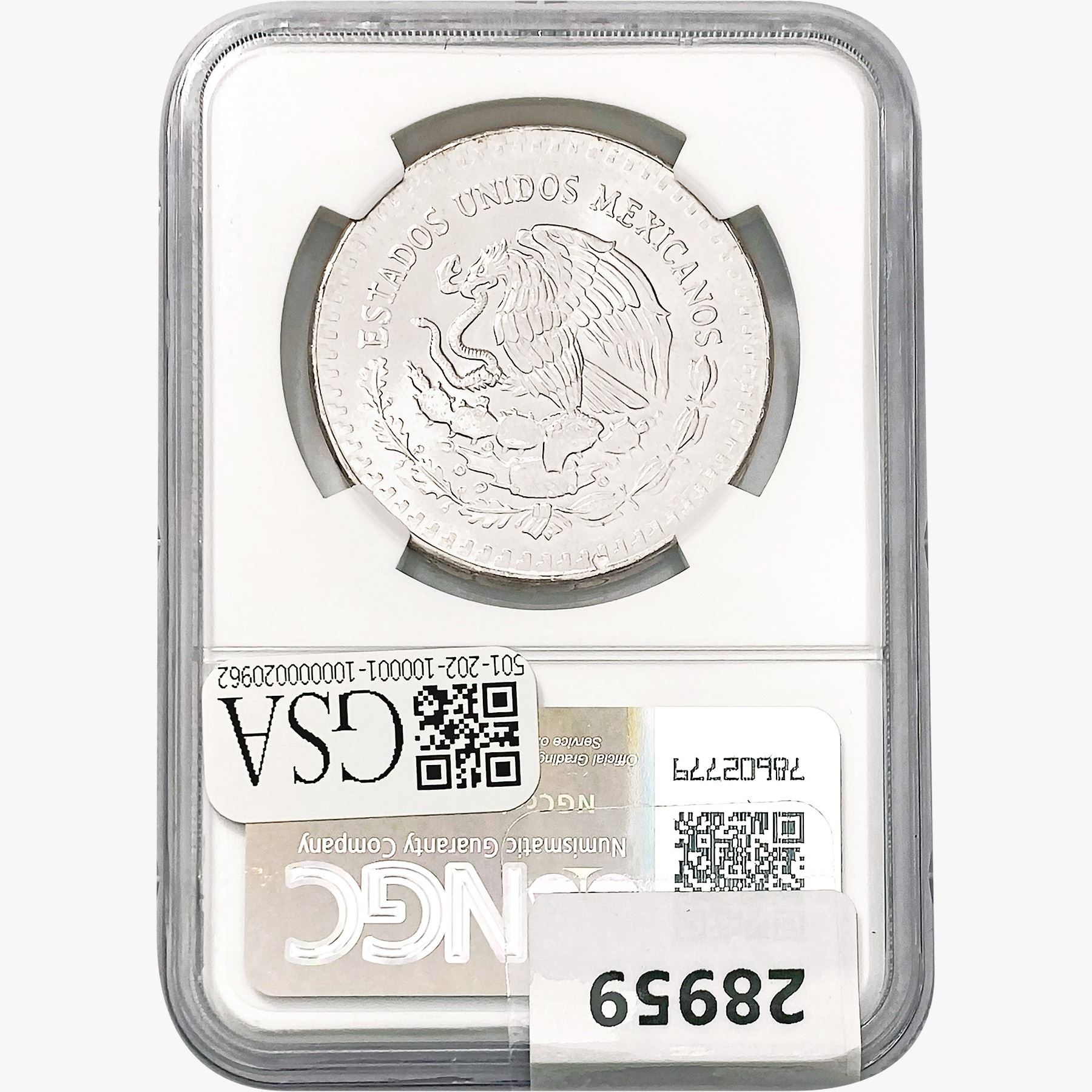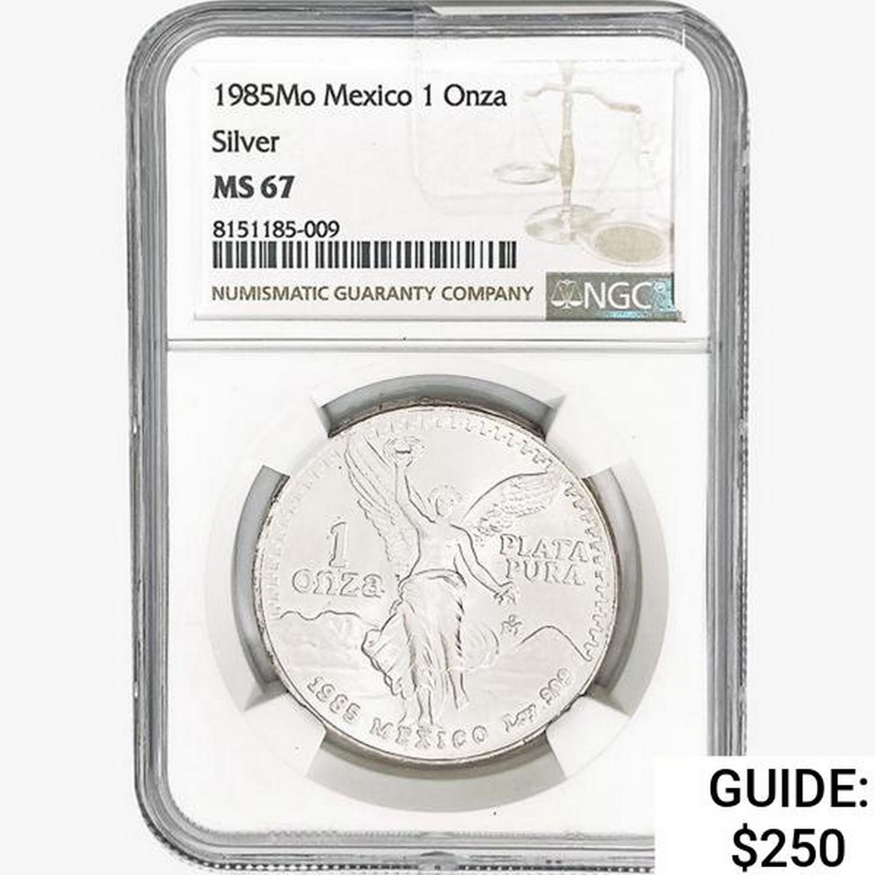 1985Mo 1oz. Silver Mexicanos Onza NGC MS67