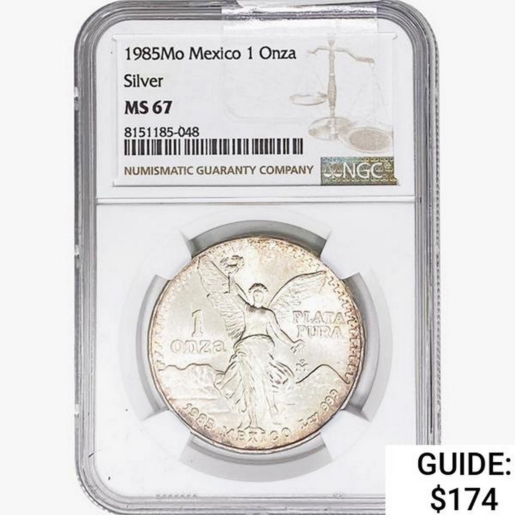 1985Mo 1oz. Silver Mexicanos Onza NGC MS67