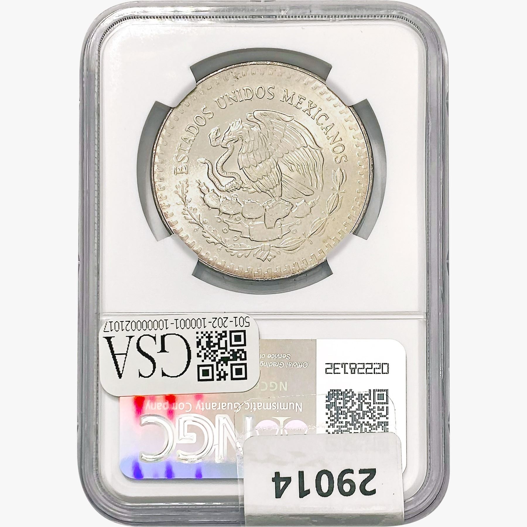 l. All non-certified coins and currency are guaranteed genuine, but are not guaranteed as to grade, since grading is a matter of opinion, an art and not a science, and therefore the description rendered by GSA or any third-party grading service may not agree with the opinion of others (including trained experts), and the same expert may not grade the same item with the same grade at two different times. GSA may, but is not obligated to, express an opinion as to non-certified numismatic items, in GSA’s opinion, or by its employees’ experience and the current interpretation of the American Numismatic Association’s standards as of the date the catalog was prepared. There is no guarantee or warranty expressed or implied that the grading opinions utilized by GSA, if any, will meet the standards of any grading service at any time in the future.
