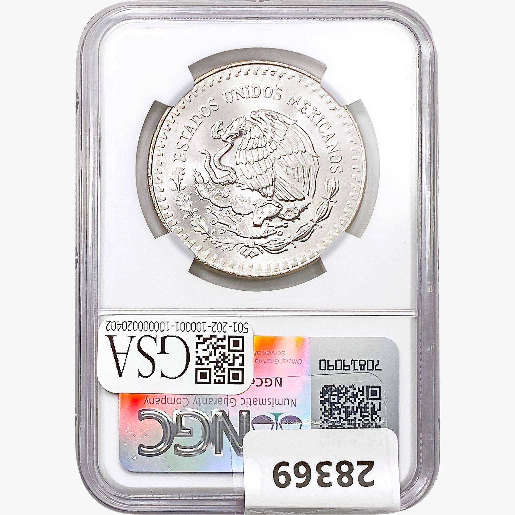 1985Mo 1oz. Silver Mexicanos Onza NGC MS67