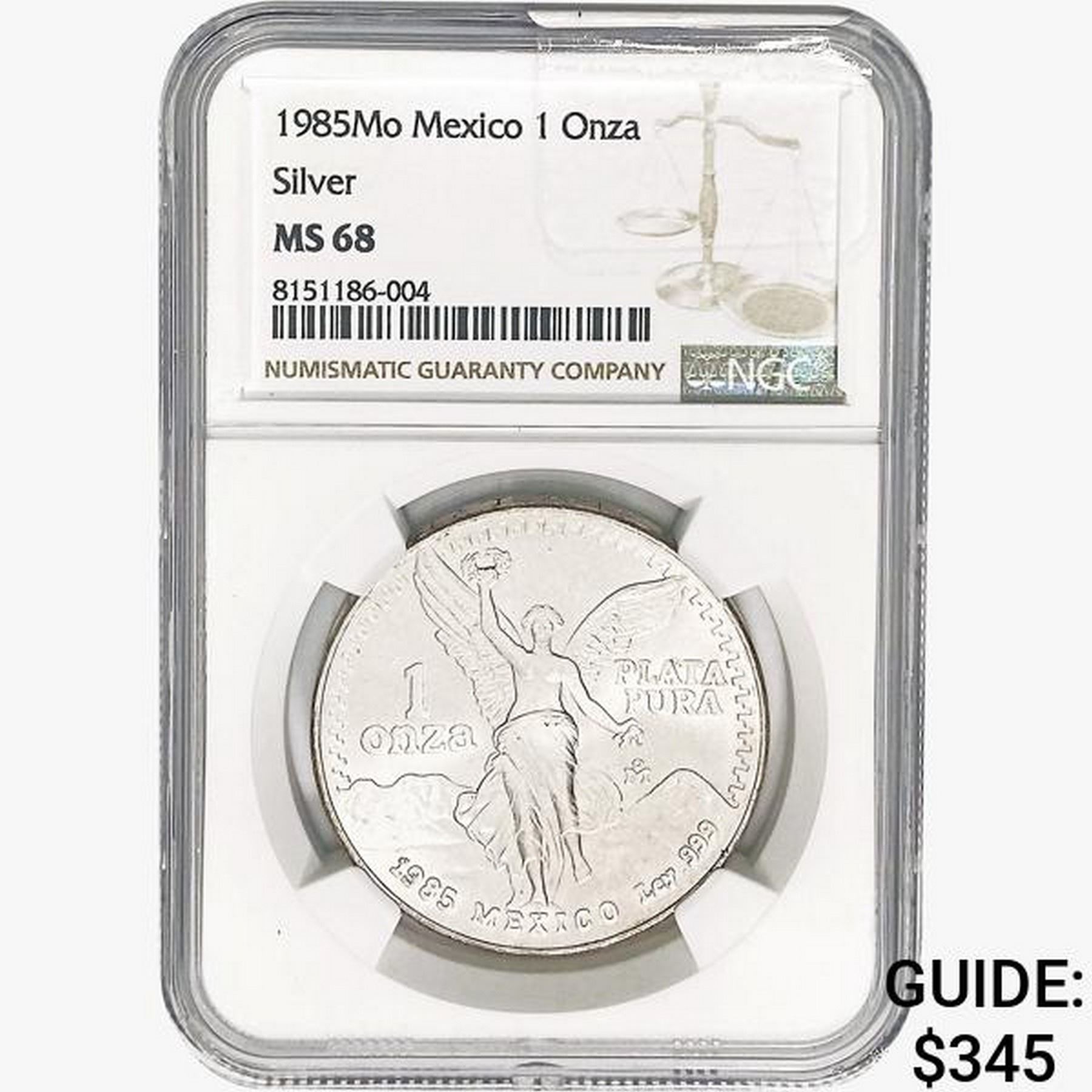 1985Mo 1oz. Silver Mexicanos Onza NGC MS68