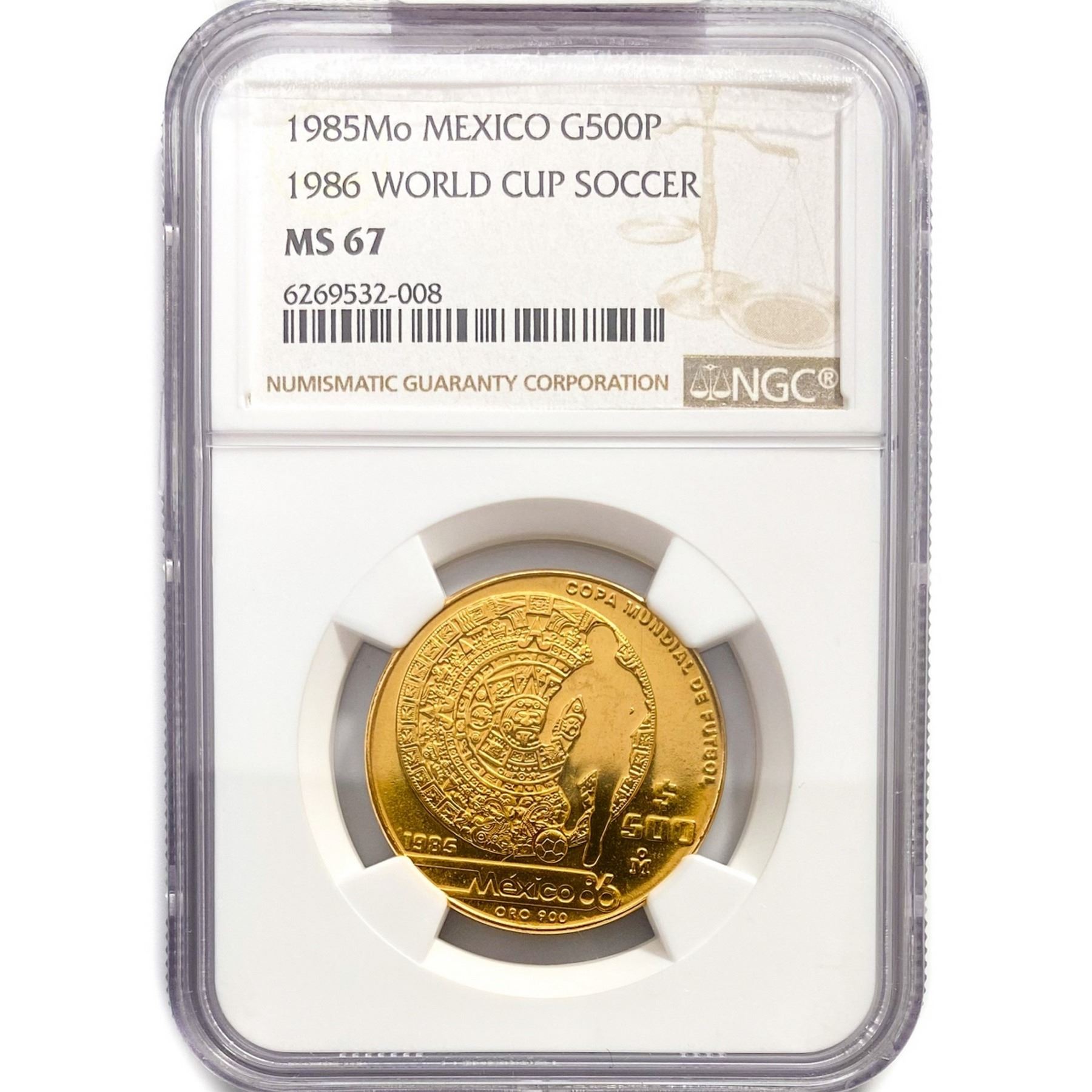 1985Mo Mexico 1/2oz Gold 500P World Cup NGC MS67