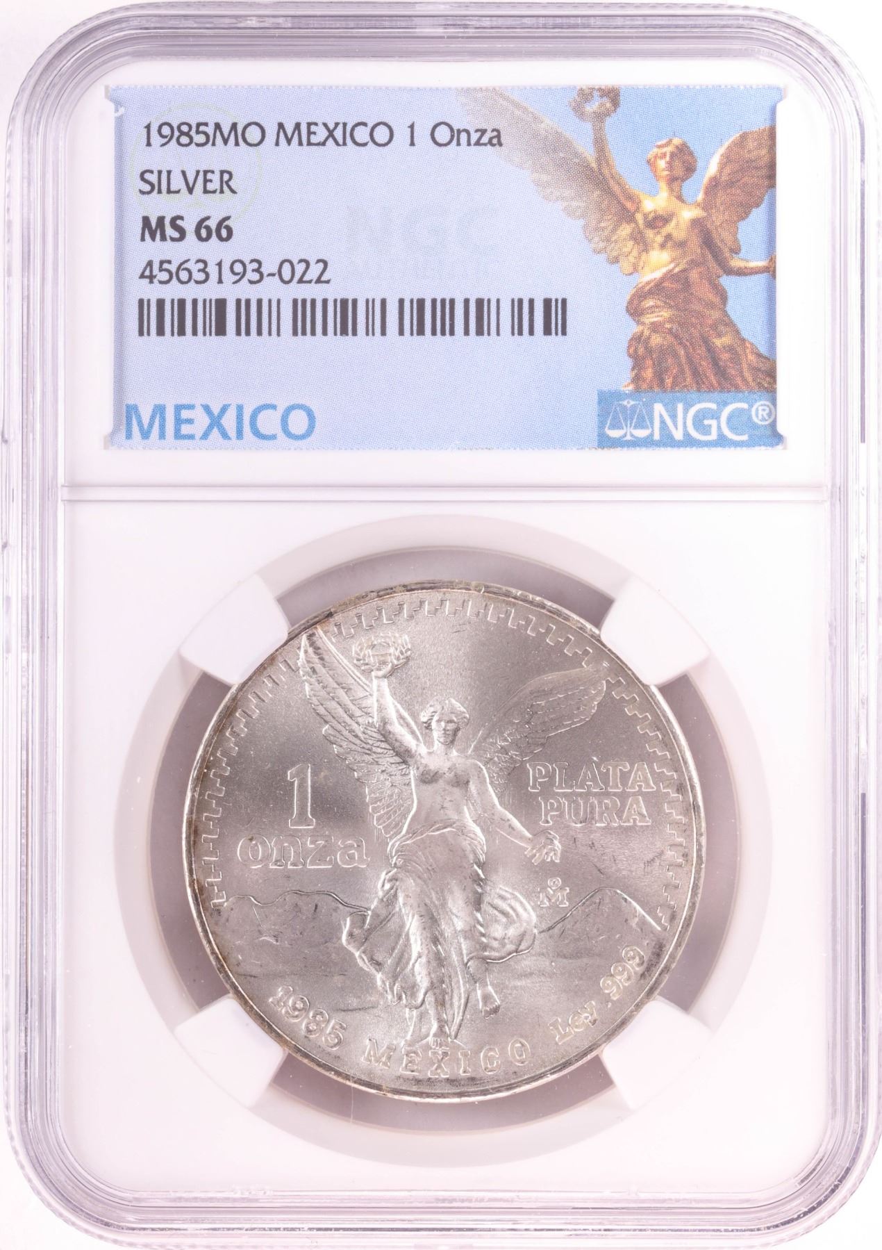One 1985Mo Mexico 1 Onza Libertad Silver Coin NGC MS66.