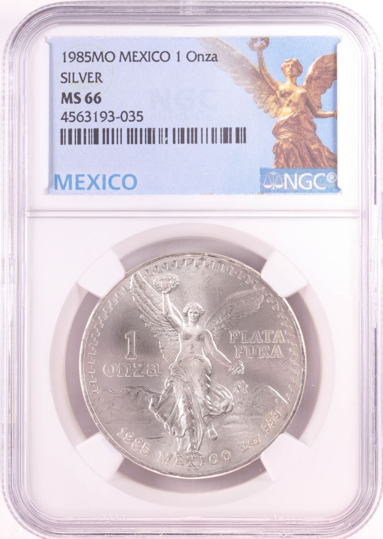 One 1985Mo Mexico 1 Onza Libertad Silver Coin NGC MS66.