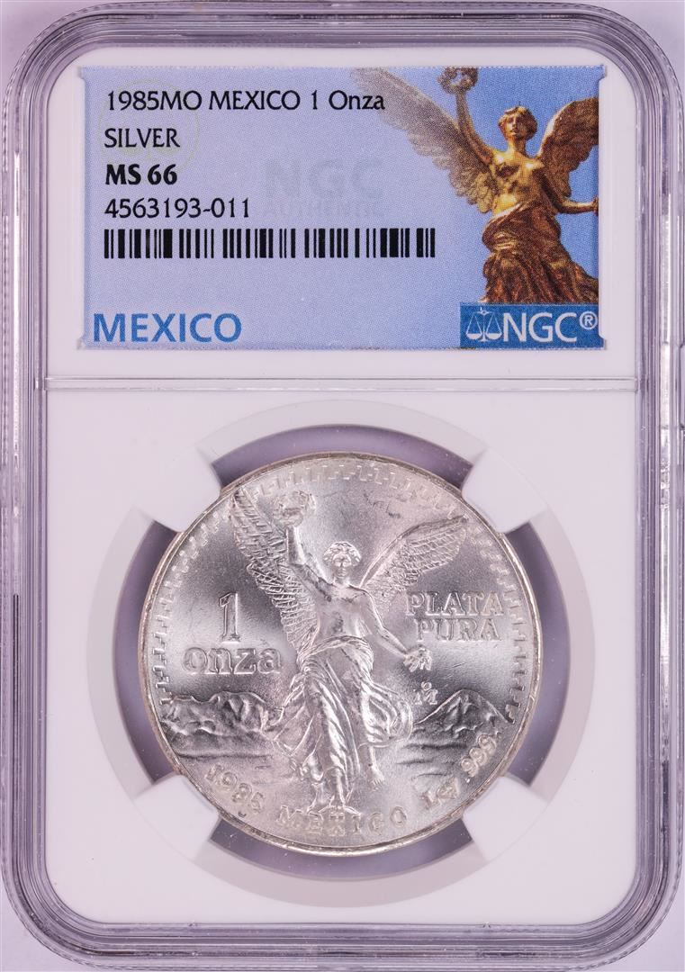 One 1985Mo Mexico 1 Onza Libertad Silver Coin NGC MS66. NGC Certified.