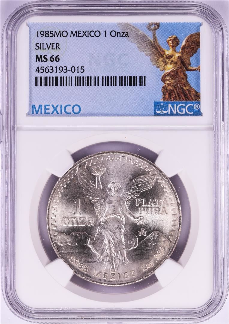 One 1985Mo Mexico 1 Onza Libertad Silver Coin NGC MS66. NGC Certified.