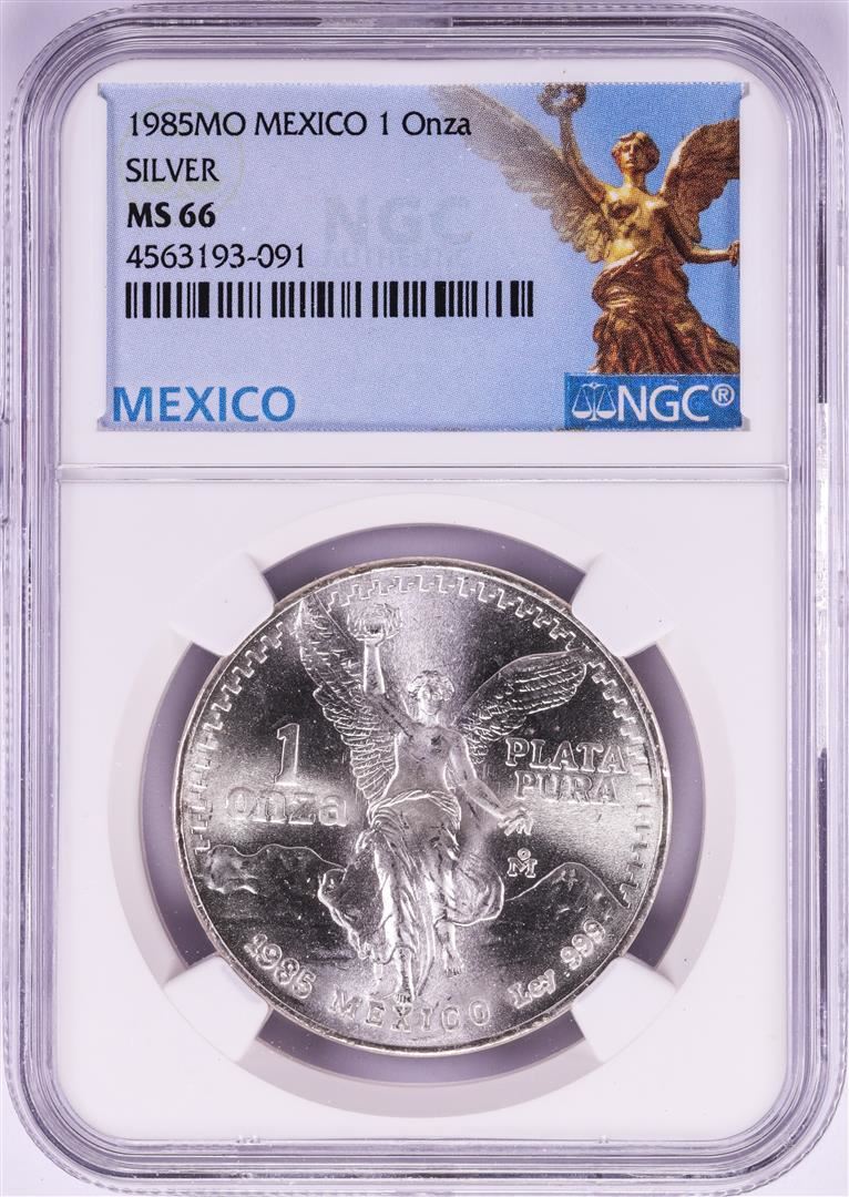 One 1985Mo Mexico 1 Onza Libertad Silver Coin NGC MS66. NGC Certified.