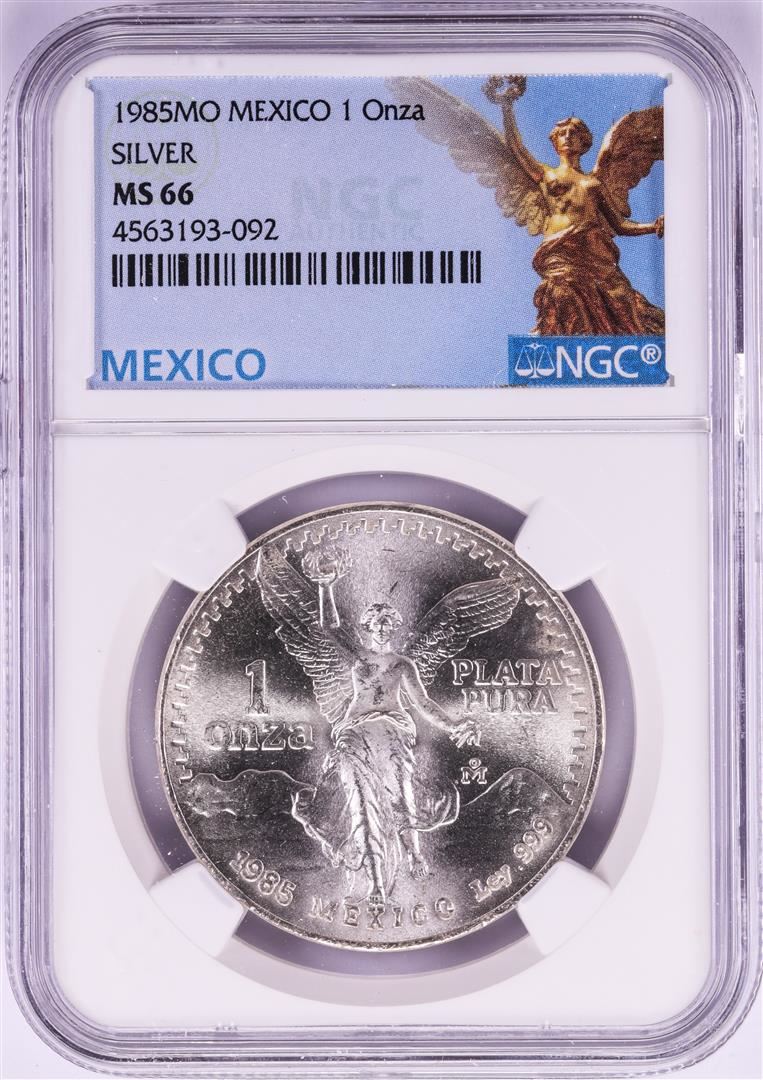One 1985Mo Mexico 1 Onza Libertad Silver Coin NGC MS66. NGC Certified.