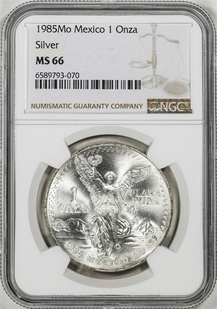 One 1985Mo Mexico 1 Onza Libertad Silver Coin NGC MS66. NGC Certified.