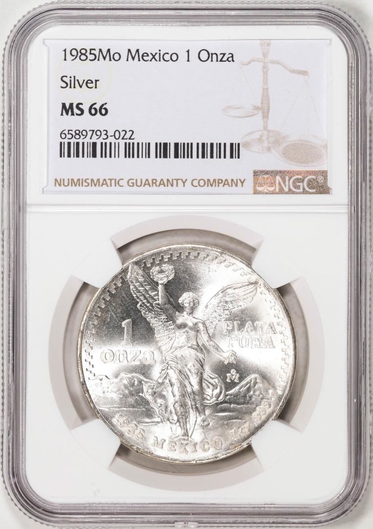 One 1985Mo Mexico 1 Onza Libertad Silver Coin NGC MS66. NGC Certified.