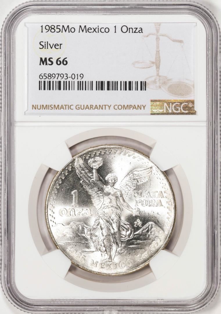 One 1985Mo Mexico 1 Onza Libertad Silver Coin NGC MS66. NGC Certified.