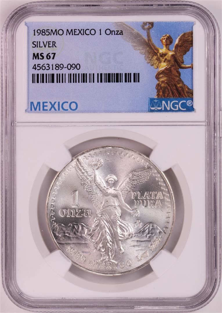 One 1985Mo Mexico 1 Onza Libertad Silver Coin NGC MS67. NGC Certified.