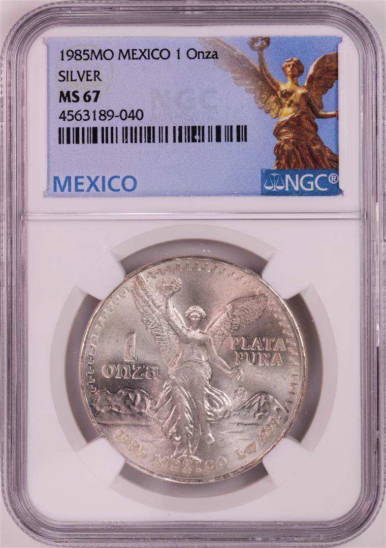 One 1985Mo Mexico 1 Onza Libertad Silver Coin NGC MS67. NGC Certified.