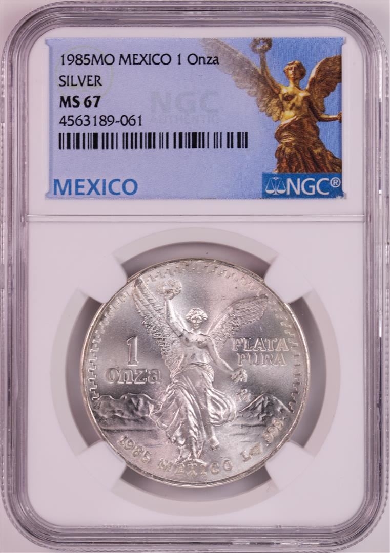 One 1985Mo Mexico 1 Onza Libertad Silver Coin NGC MS67. NGC Certified.