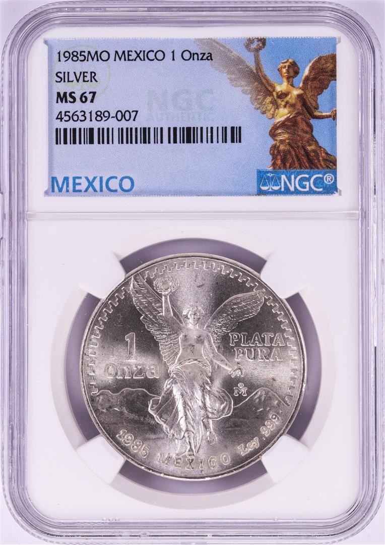 One 1985Mo Mexico 1 Onza Libertad Silver Coin NGC MS67. NGC Certified.