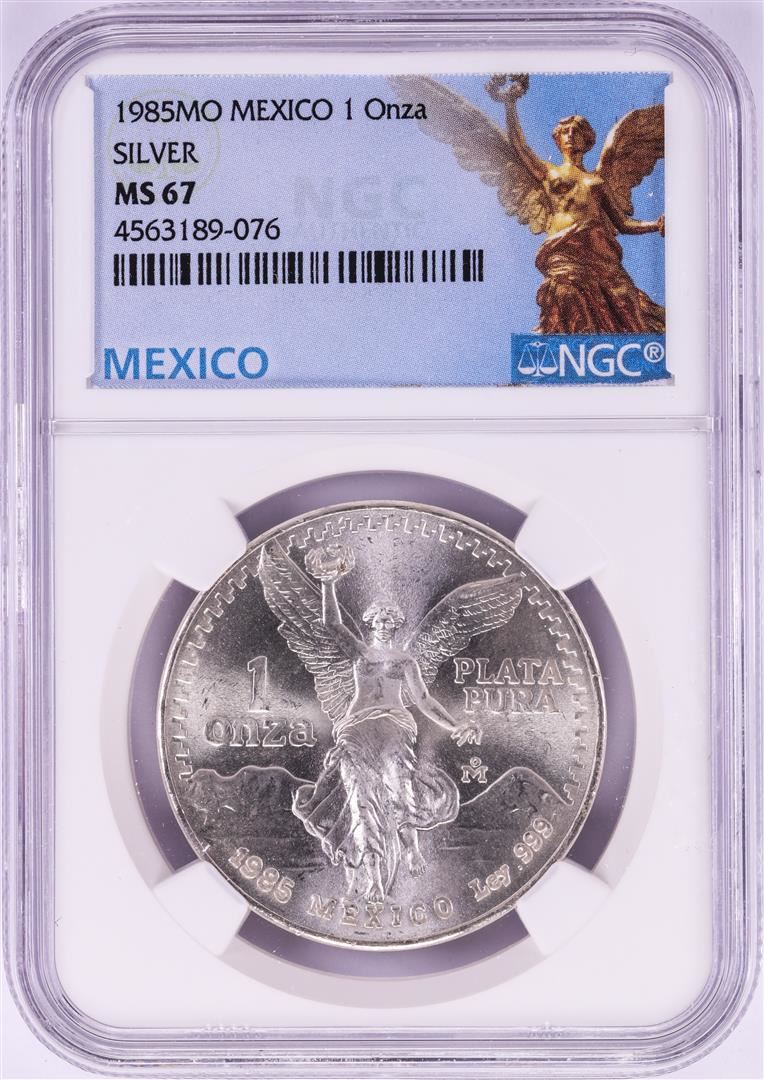 One 1985Mo Mexico 1 Onza Libertad Silver Coin NGC MS67. NGC Certified.