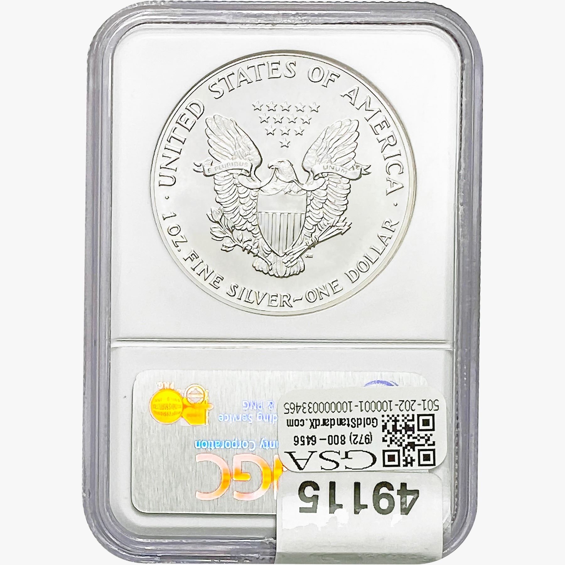 e. Coins sold referencing a third-party grading service are sold “AS IS” without any express or implied warranty, except for a guarantee by GSA that they are genuine. Removal or alteration of the holder, voids all of Bidder’s claims concerning that Product. Certain warranties may be available from the grading services and Bidders are referred to them for further details: Numismatic Guaranty Corporation (NGC), PO Box 4776, Sarasota, FL 34230, www.ngccoin.com/services/writtenguarantee.asp; Professional Coin Grading Services (PCGS), PO Box 9458, Newport Beach, CA 92658, www.pcgs.com/guarantee.html; ANACS, 6555 S. Kenton St., Ste. 303, Englewood, CO 80111; and Independent Coin Grading Co. (ICG), 7901 East Bellview, Ave., Suite 50, Englewood, CO 80111.
