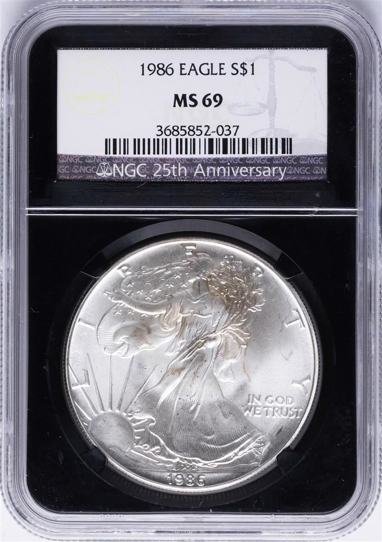 One 1986 $1 American Silver Eagle Coin NGC MS69 Black Core. NGC Certified.