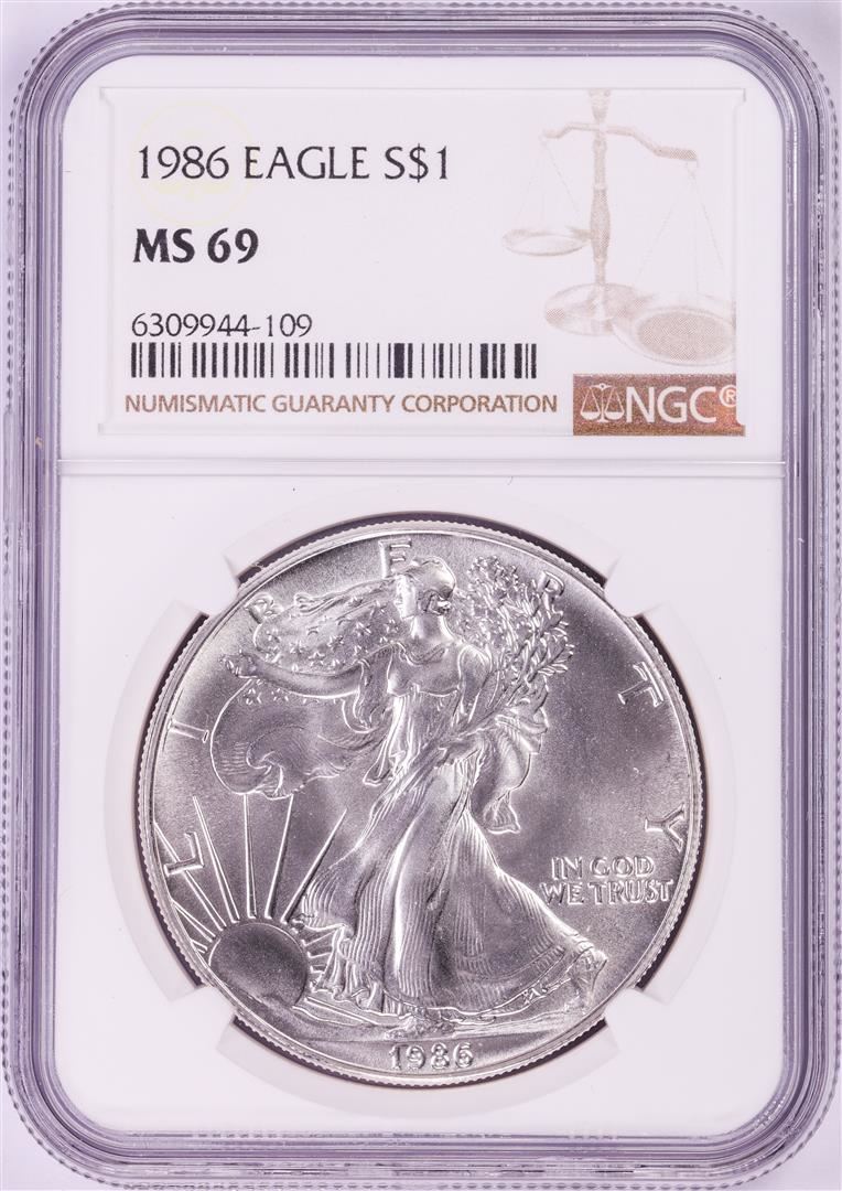 One 1986 $1 American Silver Eagle Coin NGC MS69. NGC Certified.