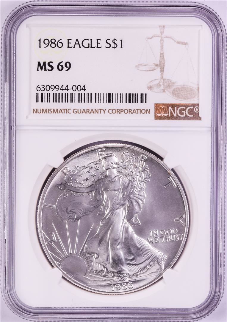 One 1986 $1 American Silver Eagle Coin NGC MS69. NGC Certified.