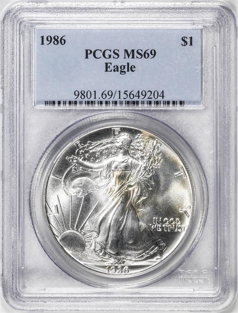 One 1986 $1 American Silver Eagle Coin PCGS MS69. PCGS Graded.