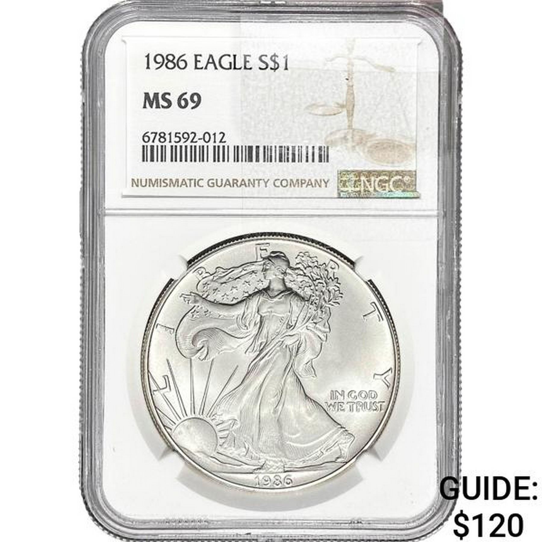 1986 $1 Silver Eagle NGC MS69