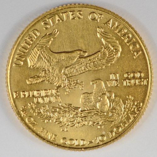 1986 $10.00 AMERICAN GOLD EAGLE, GEM BU, RARE DATE, NEAR MS-70 QUALITY
