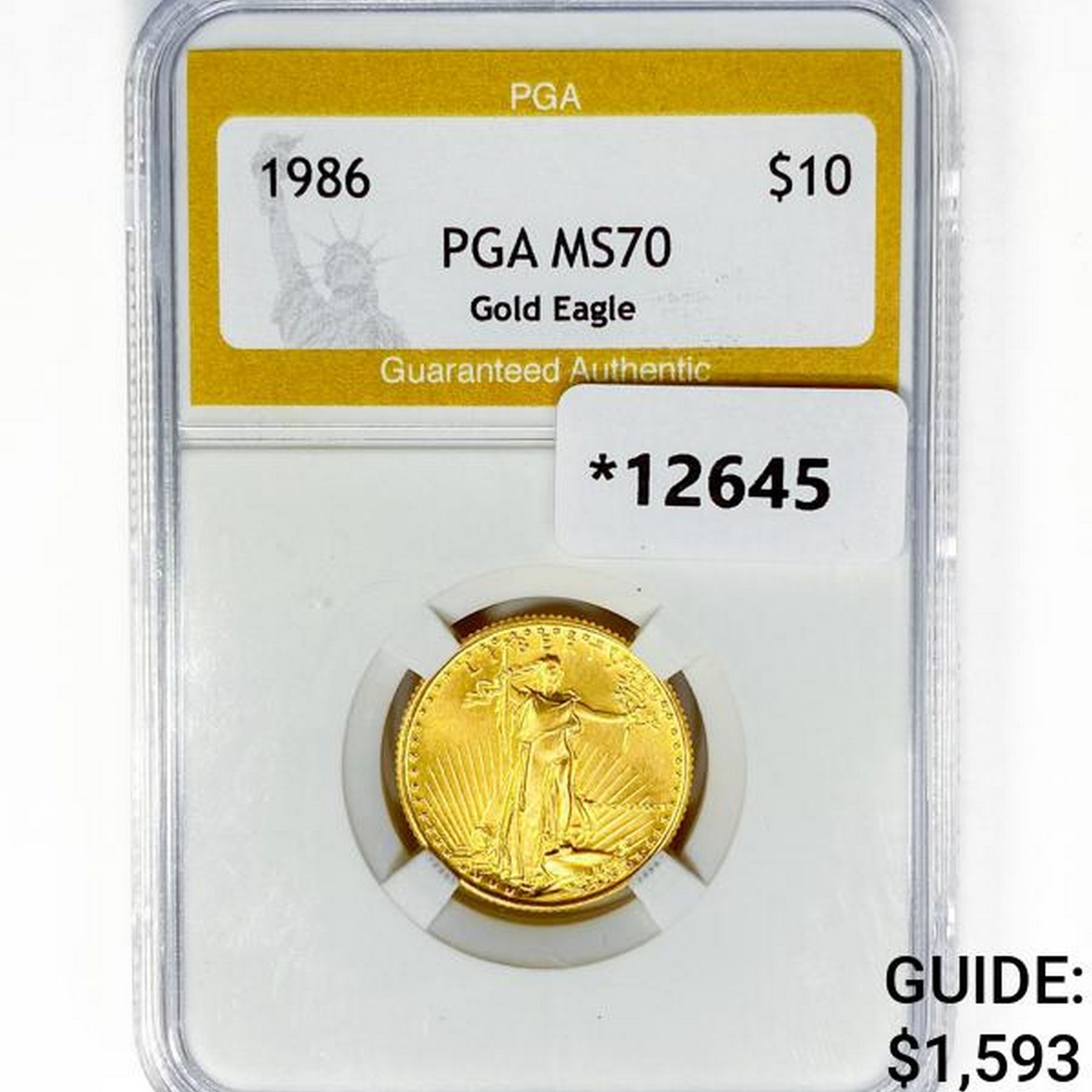 1986 $10 1/4oz American Gold Eagle PGA MS70
