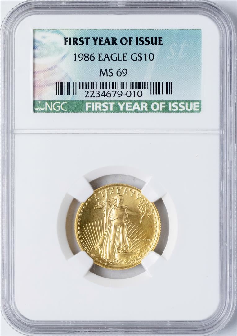 One 1986 $10 American Gold Eagle Coin NGC MS69 First Year of Issue. NGC Certified.