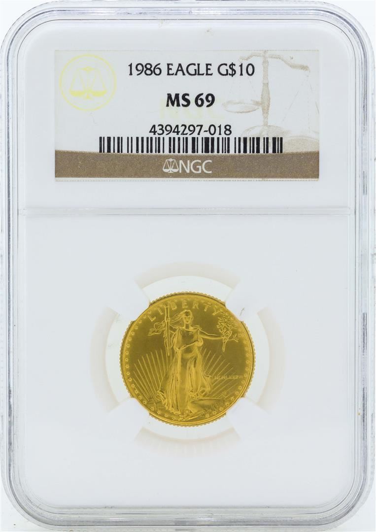 One 1986 $10 American Gold Eagle Coin NGC MS69. NGC Certified.