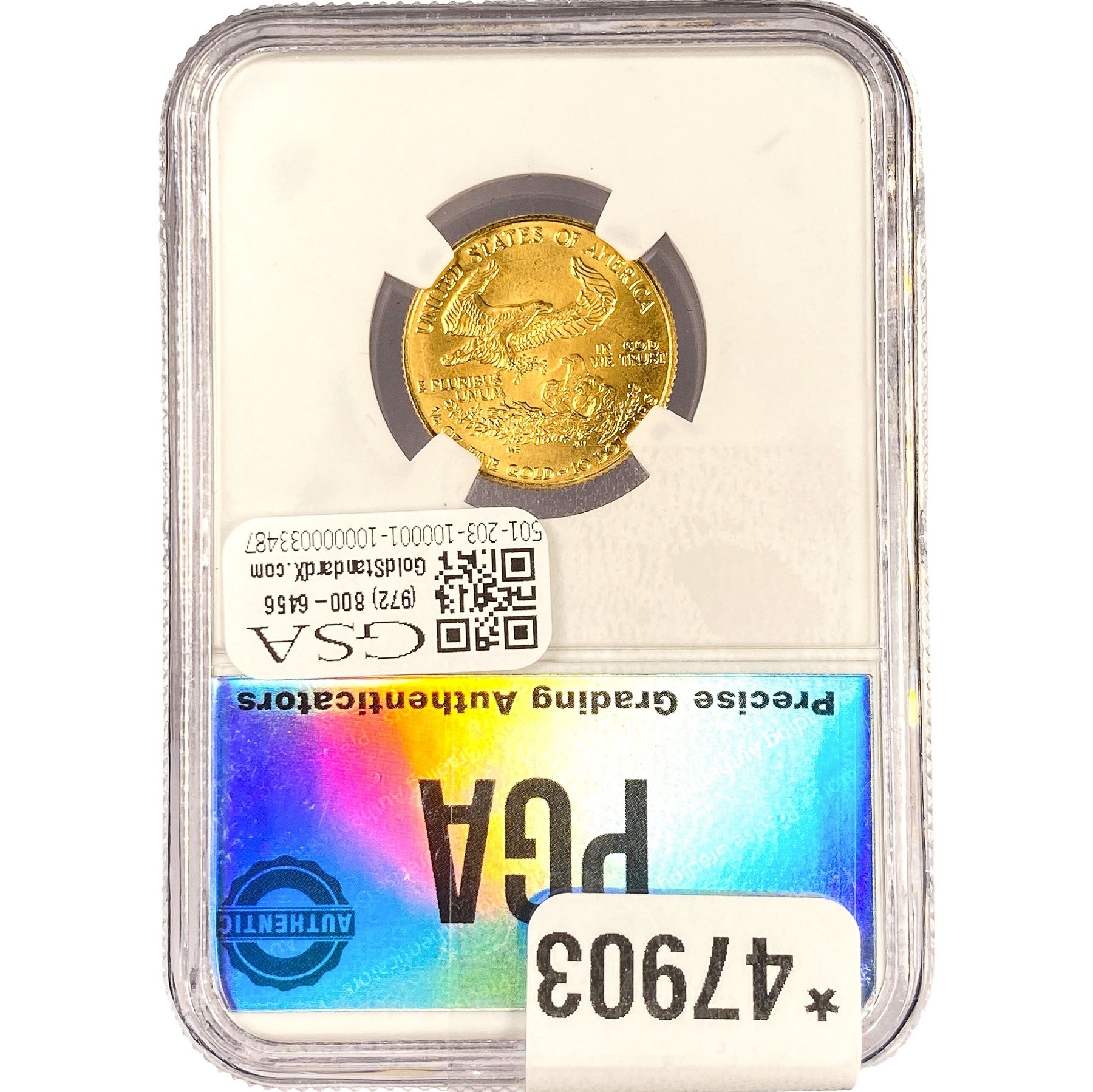 e. Coins sold referencing a third-party grading service are sold “AS IS” without any express or implied warranty, except for a guarantee by GSA that they are genuine. Removal or alteration of the holder, voids all of Bidder’s claims concerning that Product. Certain warranties may be available from the grading services and Bidders are referred to them for further details: Numismatic Guaranty Corporation (NGC), PO Box 4776, Sarasota, FL 34230, www.ngccoin.com/services/writtenguarantee.asp; Professional Coin Grading Services (PCGS), PO Box 9458, Newport Beach, CA 92658, www.pcgs.com/guarantee.html; ANACS, 6555 S. Kenton St., Ste. 303, Englewood, CO 80111; and Independent Coin Grading Co. (ICG), 7901 East Bellview, Ave., Suite 50, Englewood, CO 80111.