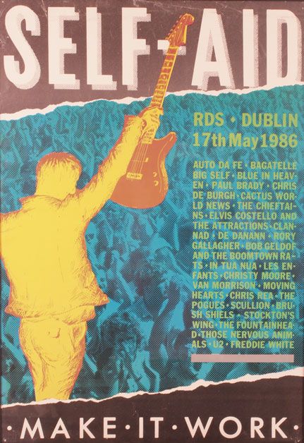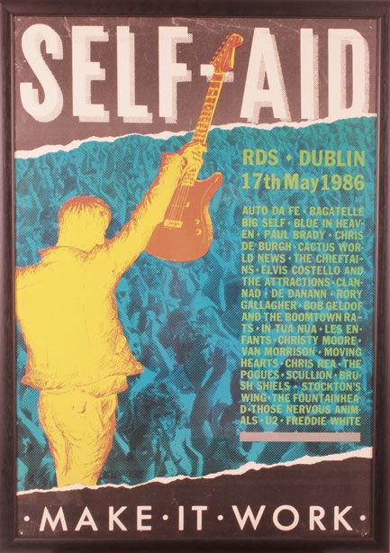Poster for Self Aid held at the RDS in 1986, framed, and 6 programmes for the same event which included U2 and the last performance by The Boomtown Rats