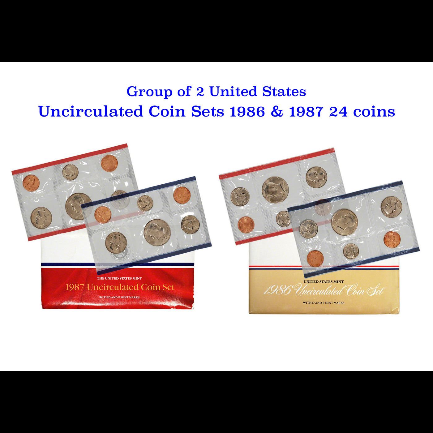 1986 & 1987 United States Mint Set in Original Government Packaging. Both Sets Contains both the entire Philadelphia and Denver Issues for 1986 & 1987. Includes 2 Kennedy halves.