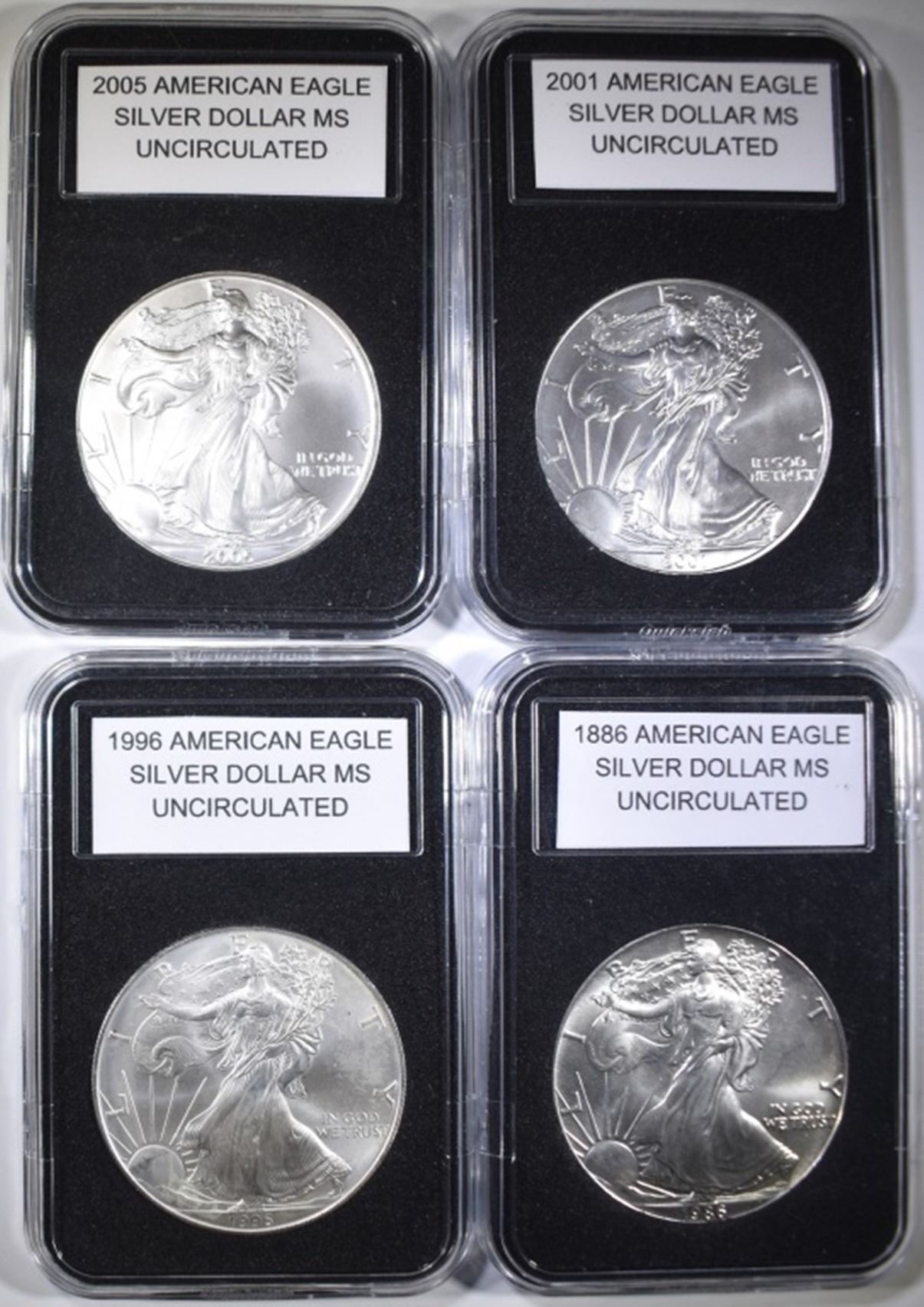 1986, 1996, 2001 & 2005 UNC AMERICAN SILVER EAGLES