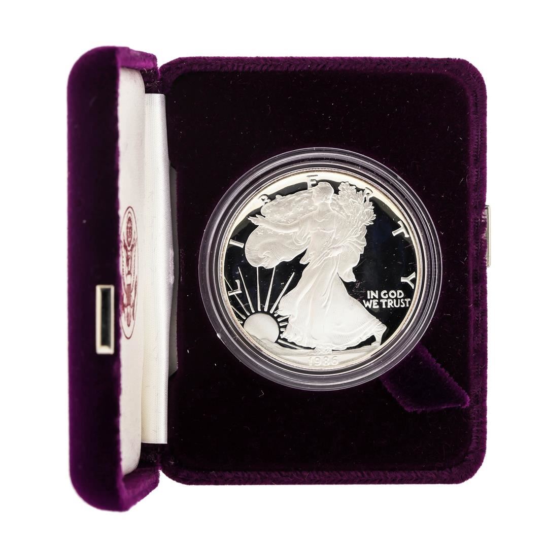 One 1986 1oz American Silver Eagle Proof Coin with Box.