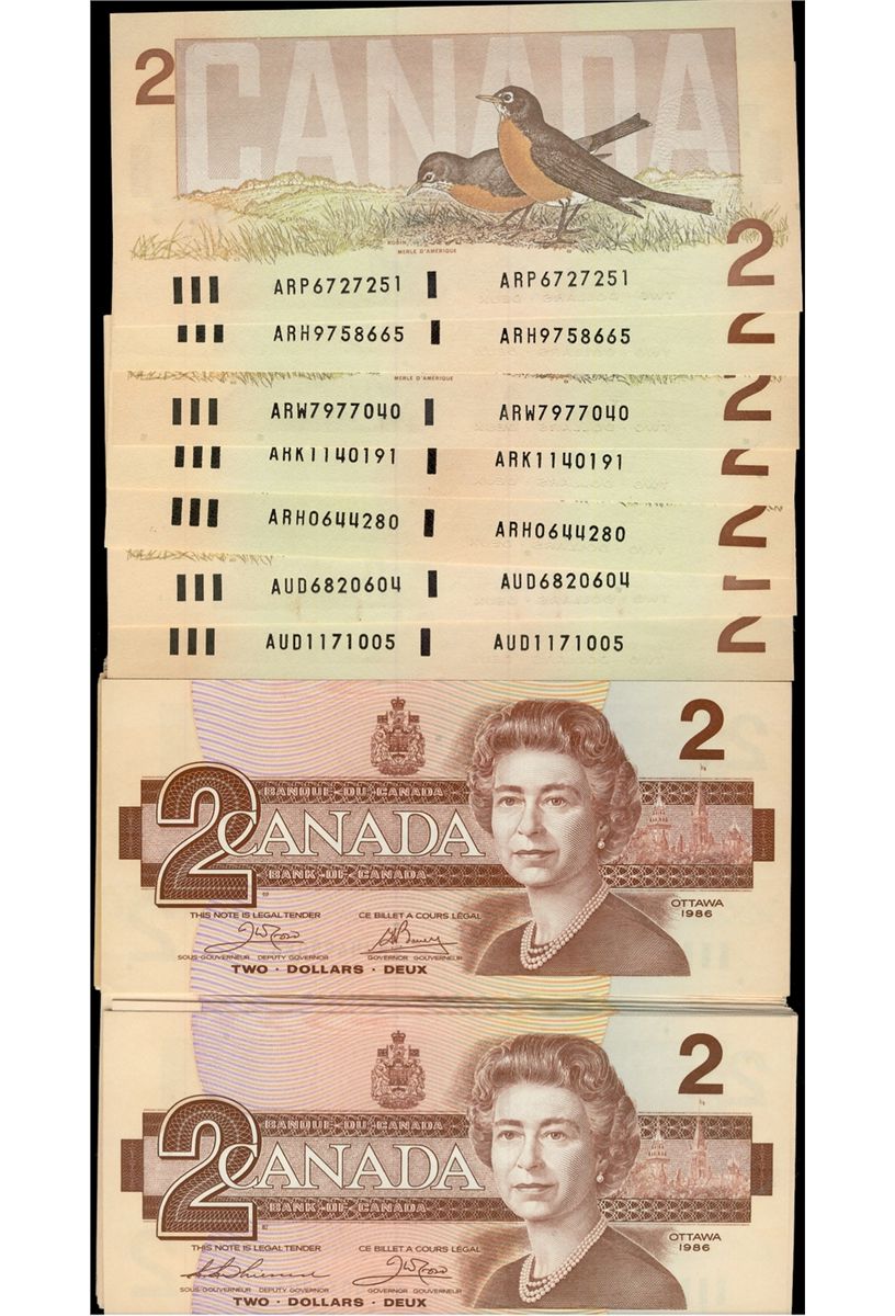 1986 $2 BC-55a(27), BC-55b(18) & BC-55c(43). Lot of 88 notes VG to UNC, just a few with issues and for the better portion, the notes grade EF or better.