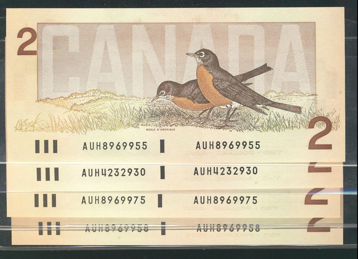 1986 $2 BC-55a, #AUH4232930, 8969955, 8969975 and 8969958 UN