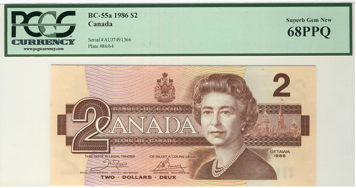 1986 $2 BC-55a #AUJ7491366, PCGS Superb Gem UNC68PPQ.