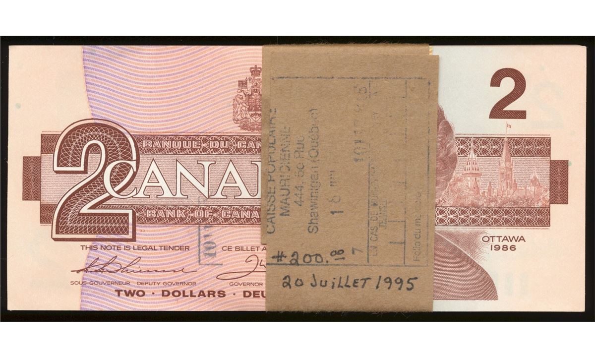 1986 $2 BC-55b Bundle of 100 notes. All original CH AU to CH UNC issues with 2 seperate consec runs.