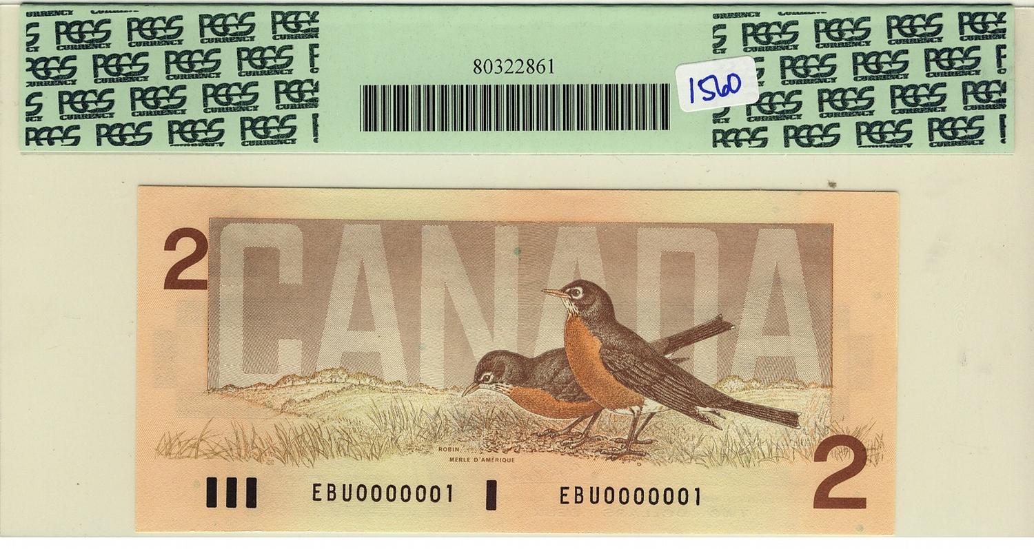 1986 $2 BC-55b-I #EBU0000001, PCGS Gem UNC65PPQ.