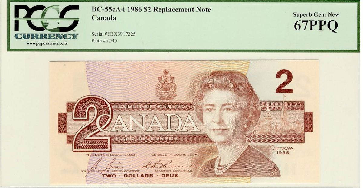 1986 $2 BC-55cA-i #EBX3917225 PCGS UNC67PPQ