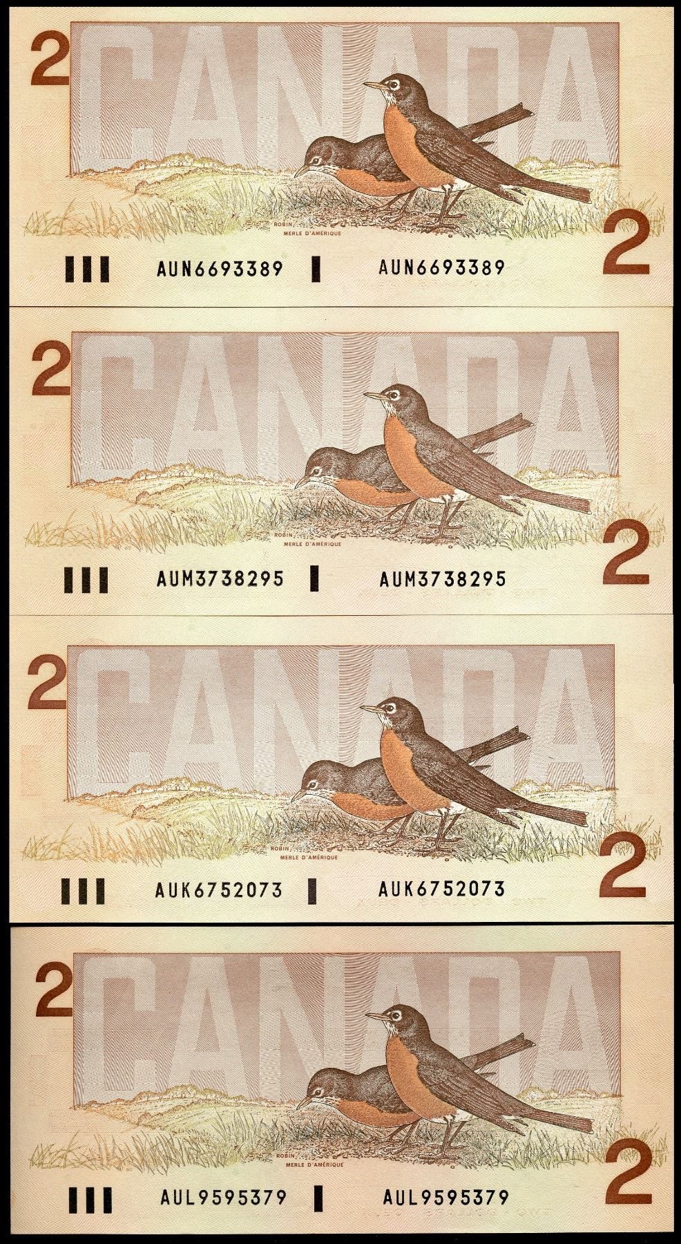 1986 $2 BC55b Lot of 4 CCCS graded notes. Three of which grade About Uncirculated-50 to UNC.