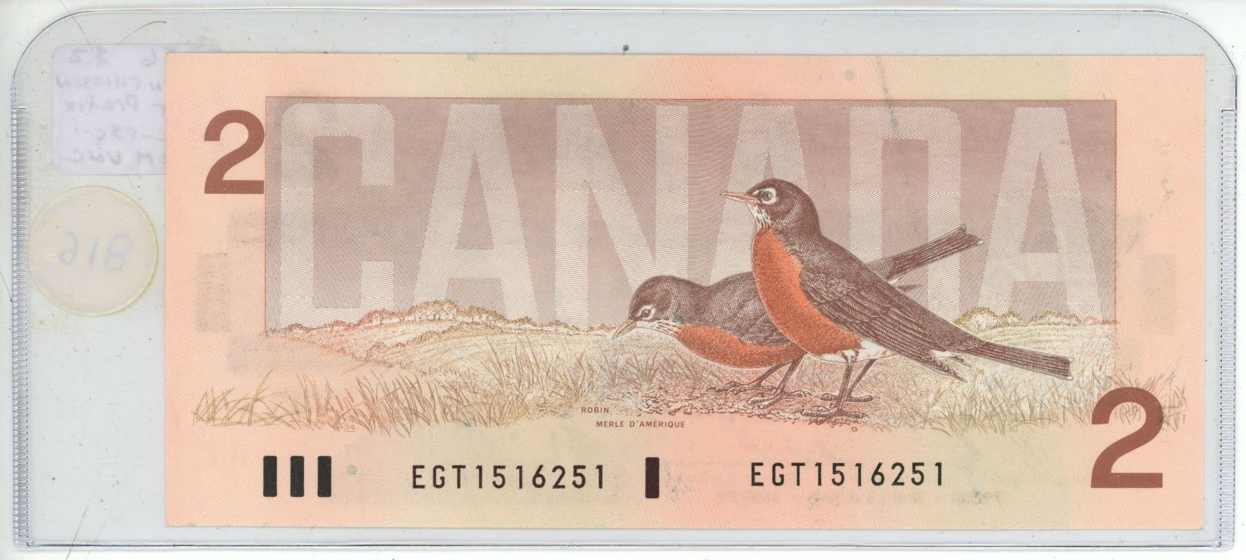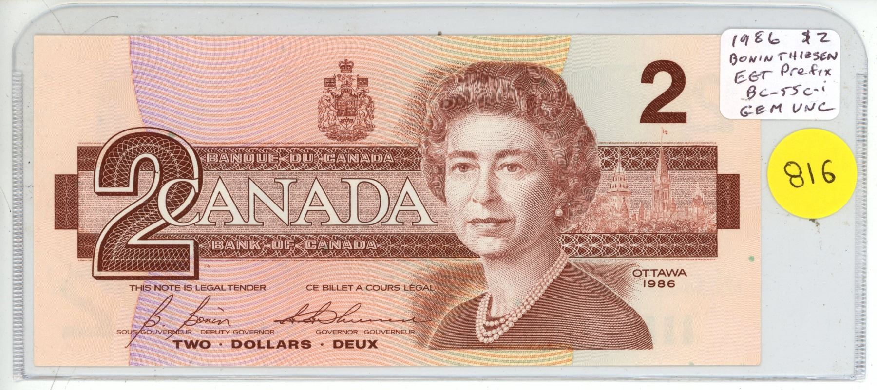 1986 $2. Bonin-Thiessen signatures. EGT 3-digit Prefix. BC-55c-i. Gem Uncirculated.