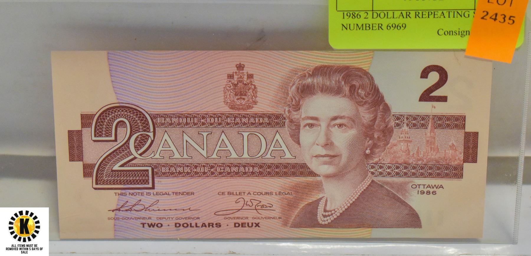 1986 2 DOLLAR REPEATING SERIAL NUMBER 6969