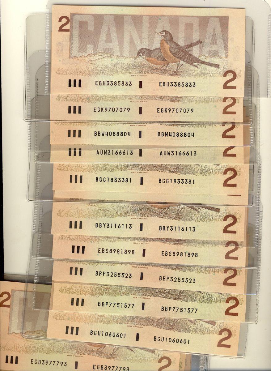 1986 $2. Lot of 18 RADAR two and three digit examples. All UNC